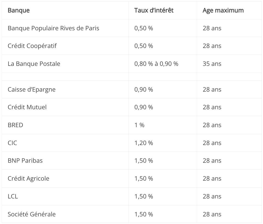 En complément, voici un tableau comparatif que j'avais fait il y a quelques mois quand j'ai lancé ma recherche de prêt étudiants pour financer mes études. Malheureusement pour moi, mon age avancée ne m'a pas permis d'obtenir un prêt malgré mes valses de claquettes auprès d'une quinzaine de banques... :